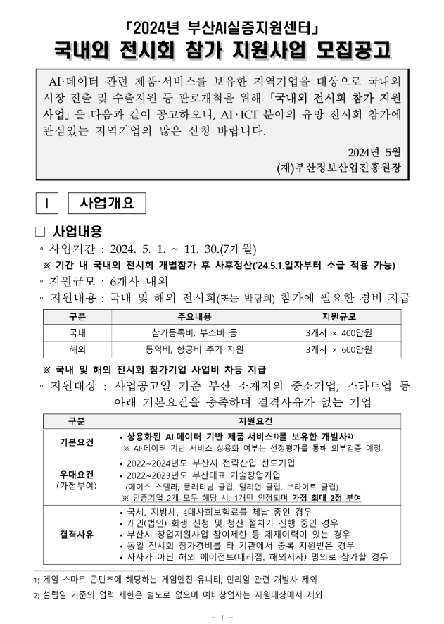 [지원사업] 부산 AI실증지원센터 전시회 참가지원 공고(5/23까지)