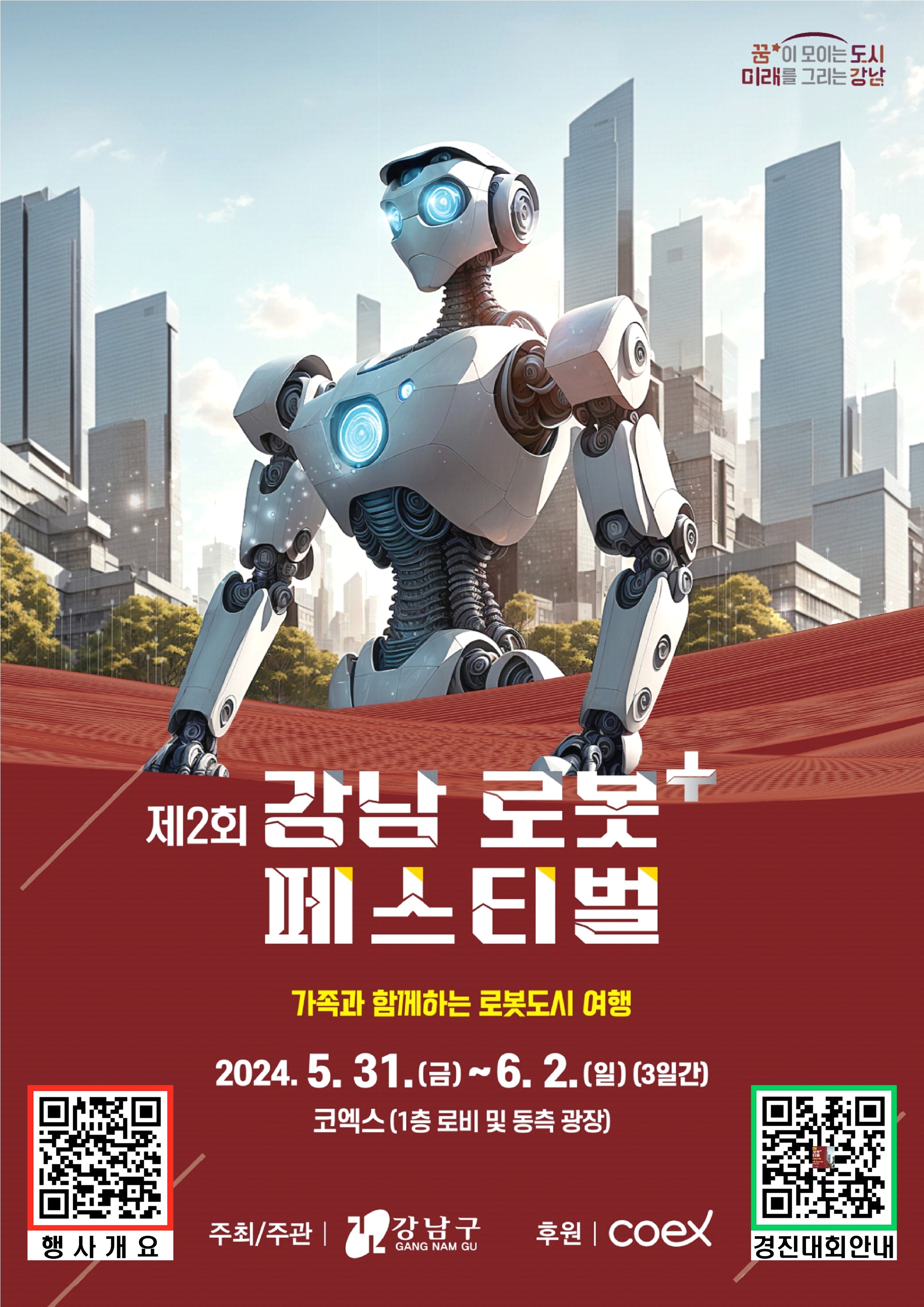 [공지] 2024 제2회 강남 로봇플러스 페스티벌 개최 안내 / 5. 31 금 ~6. 2 일 / 코엑스 광장