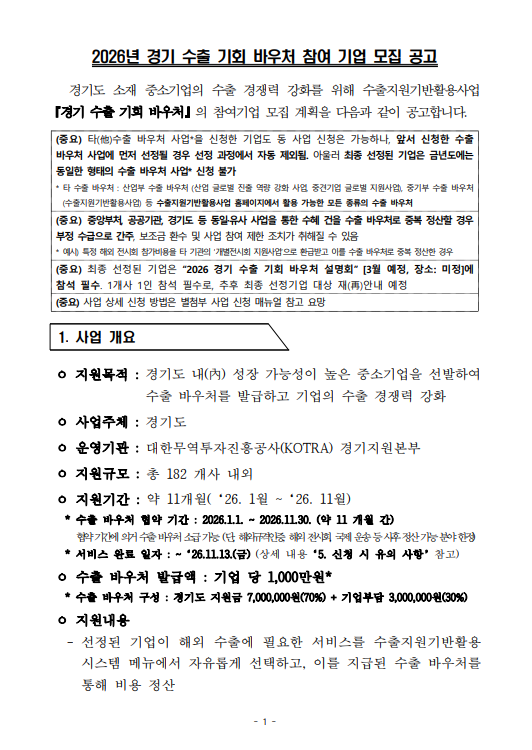 [지원사업] 2026 경기 수출 기회 바우처 지원사업 모집공고(2/9까지)